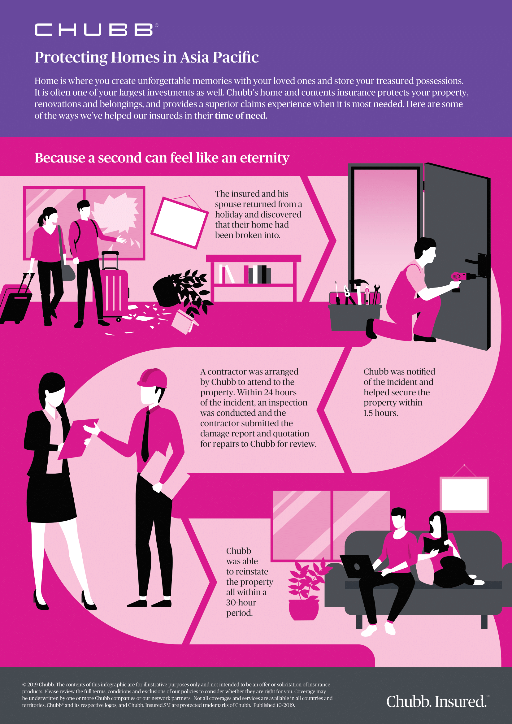 The above information is intended to be a general summary for reference only and does not form part of the policy. You should refer to the policy wording for exact terms, conditions and exclusions. The above information shall not be construed as an offer to sell or solicitation to buy or provision of any of our products outside Hong Kong SAR. For further information, please contact Chubb Insurance Hong Kong Limited on +852 3191 6656.