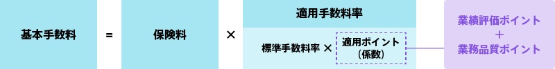 代理店手数料は、当社が定める標準手数料率を基準として、「代理店の業績」および「業務品質」を勘案して決定します。