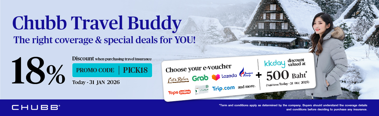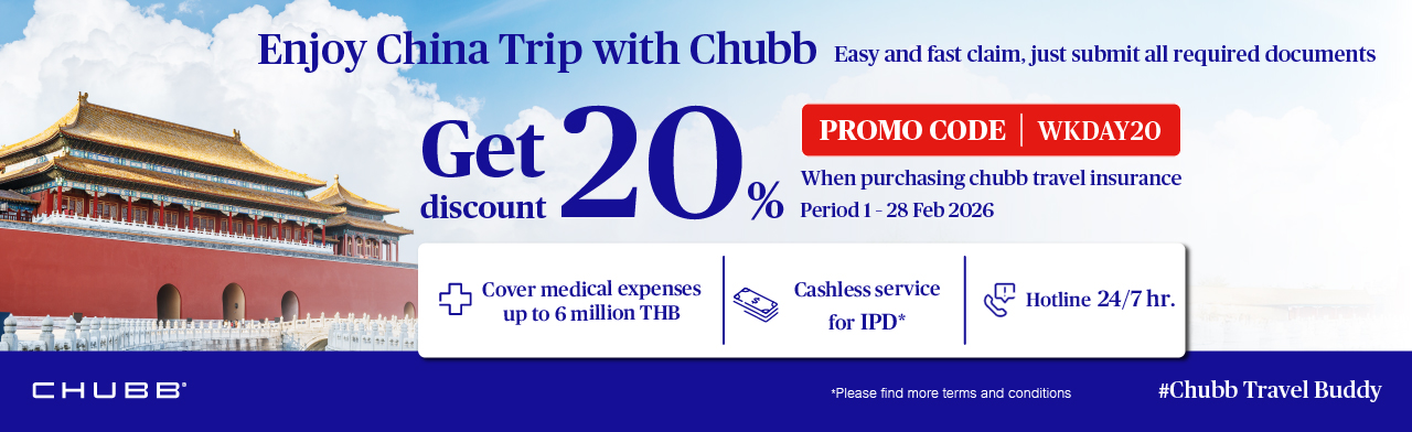 Travel with peace of mind at any time, not just in Thailand but anywhere in the world, with Chubb’s travel insurance.
