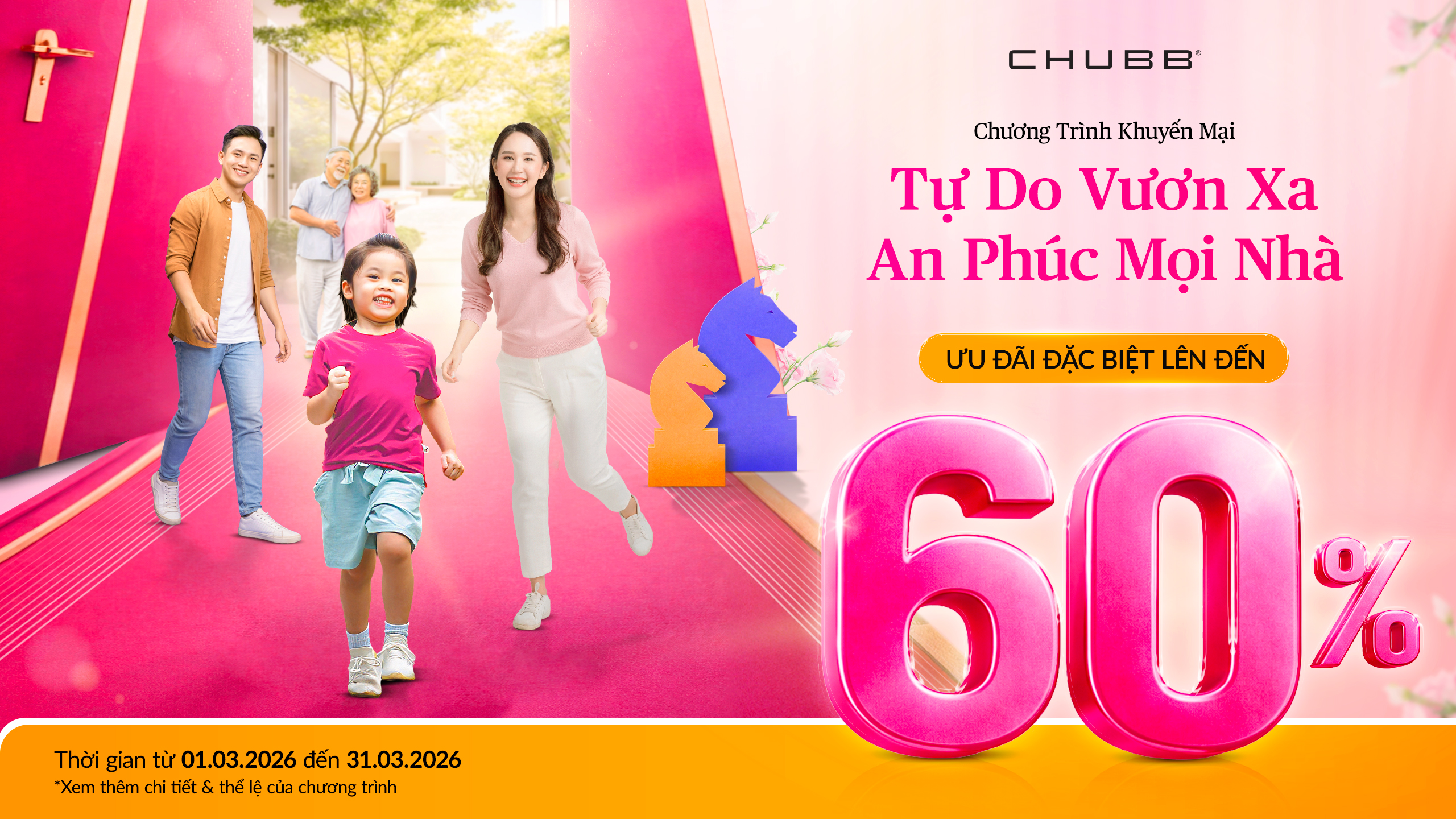 4. Thời gian khuyến mại: từ ngày 01/03/2026 đến hết ngày 31/03/2026 hoặc kết thúc sớm hơn dự kiến trong trường hợp đã trao hết quà tặng của Chương trình (tùy trường hợp nào đến trước). Trong đó, hồ sơ yêu cầu bảo hiểm (eApp hoặc Hồ sơ yêu cầu bảo hiểm giấy) được ký, nộp hợp lệ và khách hàng phải nộp đủ FYP theo quy định của Chubb Life trong thời gian từ ngày 01/03/2026 đến hết ngày 31/03/2026.